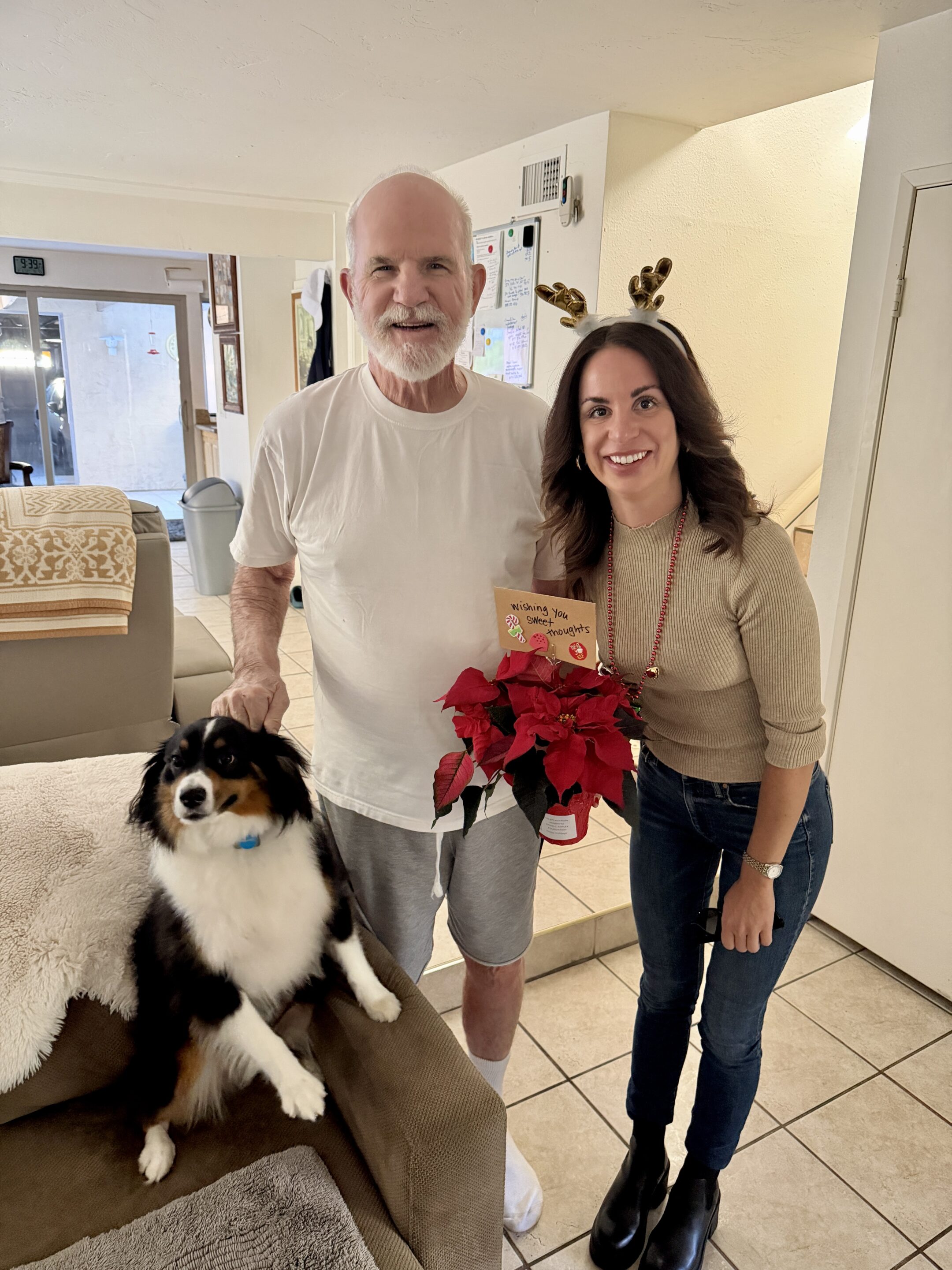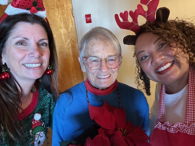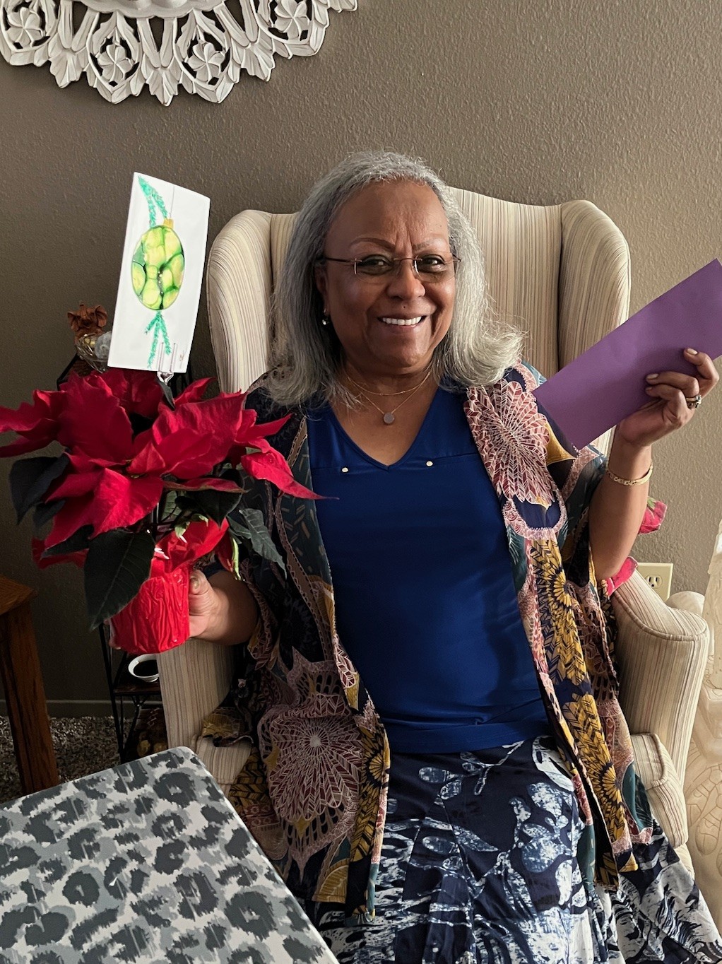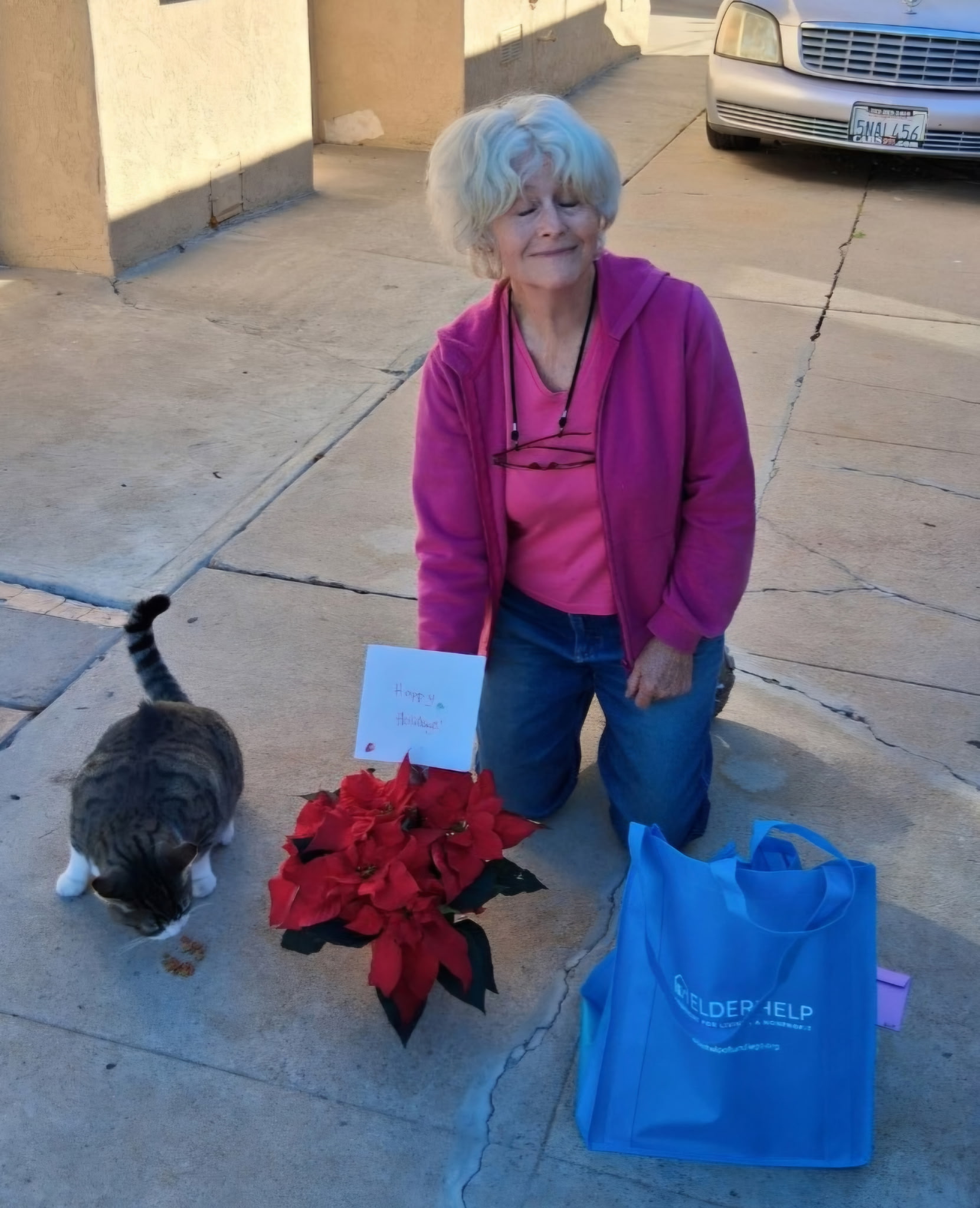Thank you for helping us deliver joy on December 6, 2025. Each of our seniors received a poinsettia plant, gift card and hand made holiday greeting card, plus a friendly visit from a volunteer. Thank you to support from the David C. Copley Foundation and individuals like you for supporting this program. Scroll down to view photos.